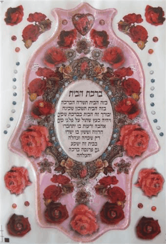 קיט חמסה מעץ + מדבקת חמסה חתוך בשטנץ "ברכת הבית" -ורוד