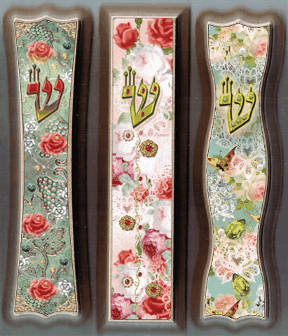 סט 3 מדבקות מעוצבות עם גליטר + 3 בתי מזוזה פרחוני