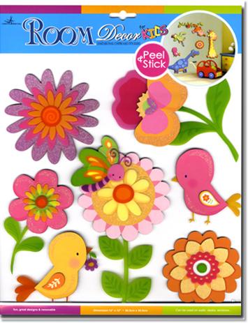 מדבקות קיר תלת מימד - פרחים וציפורים