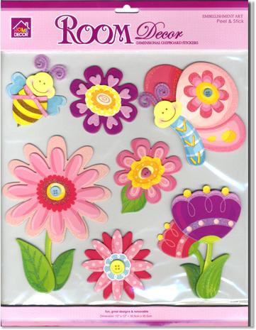 מדבקות קיר תלת מימד - פרחים פרפר ודבורה