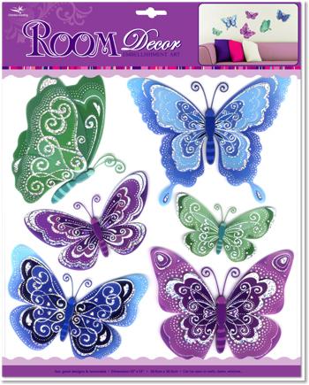 מדבקות קיר תלת מימד - פרפרים תכלת ירוק וסגול