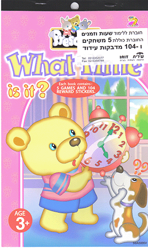 ספר מדבקות "What Time" - חוברת ללימוד שעות וזמנים